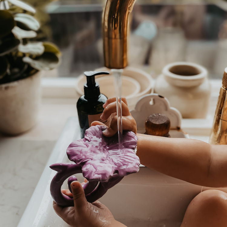 Je kleintje zal het heerlijk vinden om op deze natuurlijke, elegante bijtring te sabbelen en bijten.