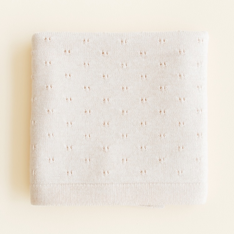 Babydeken Bibi van het merk Hvid is een klassieke ajour deken gemaakt van extra fijne Merinowol.