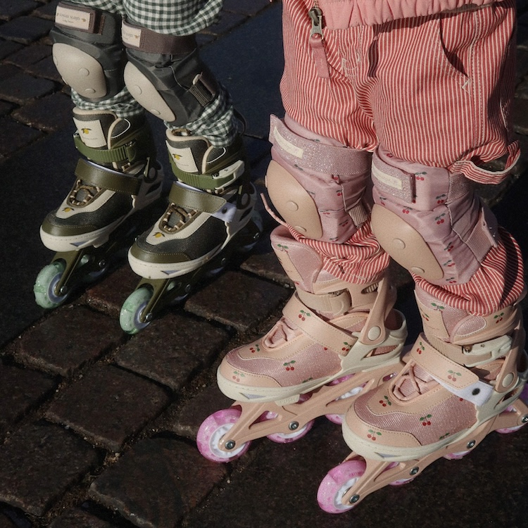 Met deze cherry blush skeelers van Konges Sløjd wordt buitenspelen een feest! De skeelers zijn voorzien van lichtgevende wieltjes die oplichten tijdens het rollen – een klein beetje magie bij elke beweging.