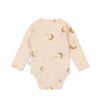 Deze romper in de kleur blush en heeft een print van maantjes met blosjes op de wangen die sterretjes uitblazen. Deze overslagromper met lange mouwen is gemaakt van de zachtste 100% biologische jersey katoen. Speciaal voor voor de gevoelige babyhuid. Door de drukknopen aan de zijkant en onderkant kun jij je baby eenvoudig aan- en uitkleden.
