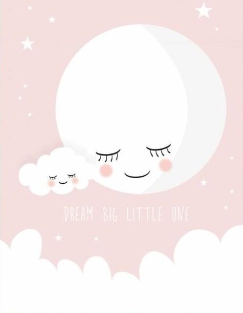 Poster Babykamer kleine maan. Lieve poster van Mimirella Aus Liebe op a4 formaat. Een schattige poster in de kleuren mint en wit met de tekst Dream Big Little One. Leuk om in te lijsten of om zo op de muur te plakken met masking tape. Geprint op 300 grams papier, dus deze poster is lekker stevig. (excl. posterhanger).