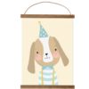Poster Babykamer Meneer Hond. Lieve poster van Mimirella Aus Liebe op a4 formaat. Een vrolijke poster in creme en groen tint. Meneer Hond viert een feestje met z'n feestmuts op z'n koppie. Leuk om in te lijsten of om zo op de muur te plakken met masking tape. Geprint op 300 grams papier, dus deze poster is lekker stevig. (excl. posterhanger).